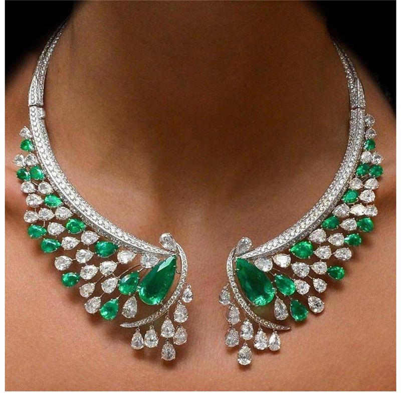 2020 Green Costume Jewelry For Women Silver Color Necklace