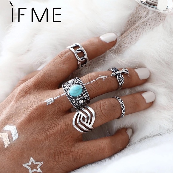 Silver Turquoise Ladies 5pcs Bohemian Gypsy Ring Tradesy