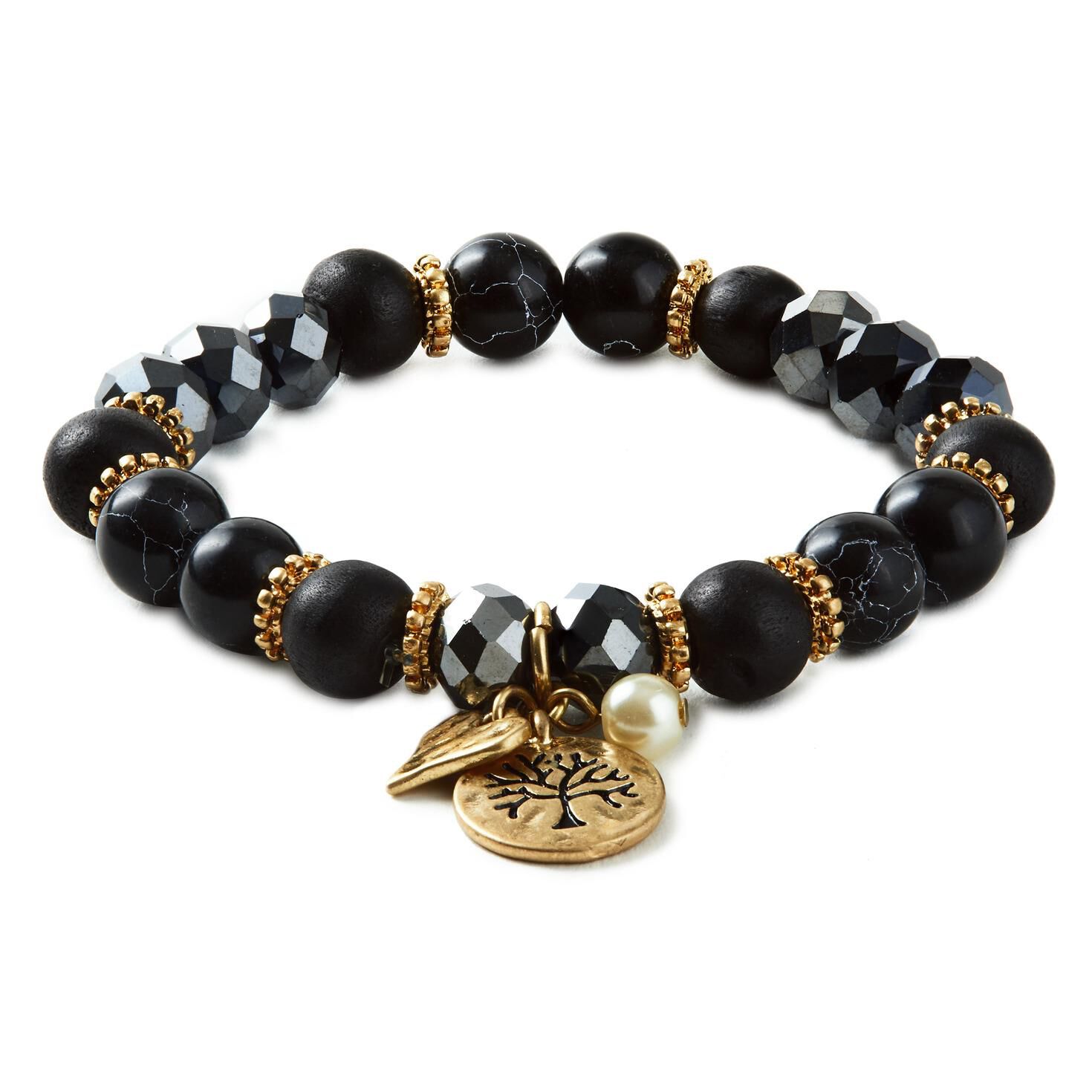 Black Agate Beaded Tree Of Life Charm Bracelet Jewelry Hallmark