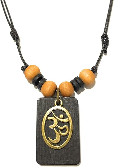 Nove Jewelry Leather Ohm Om Wood Pendant Necklace Handmade