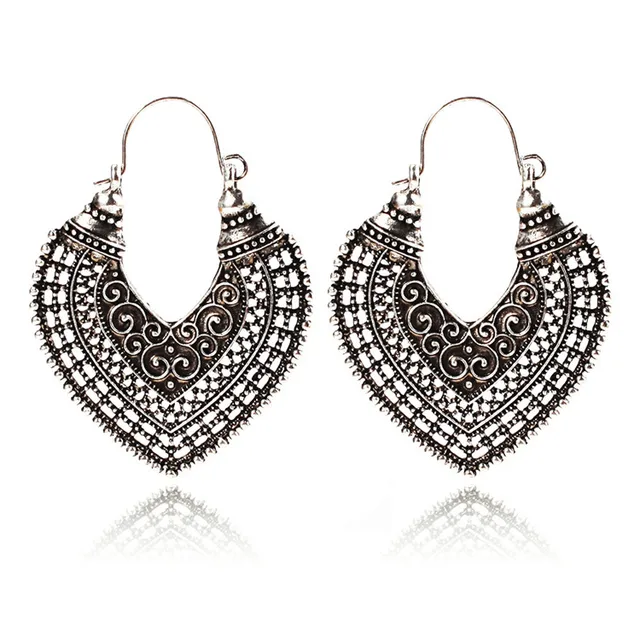 Hc Vintage Hart Shaped Gold Silver Color Earring Women Antique