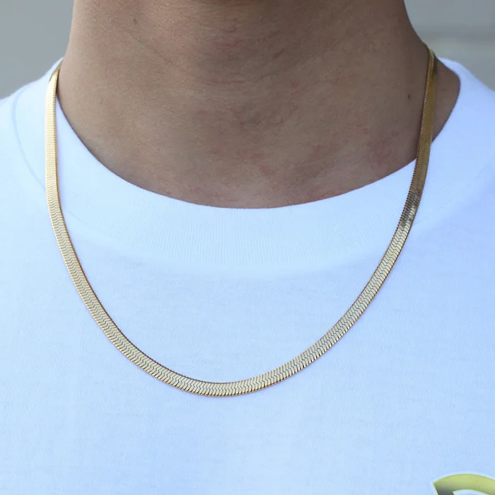 Men Jewelry 18k Gold Plated High Polish Herringbone Chain With