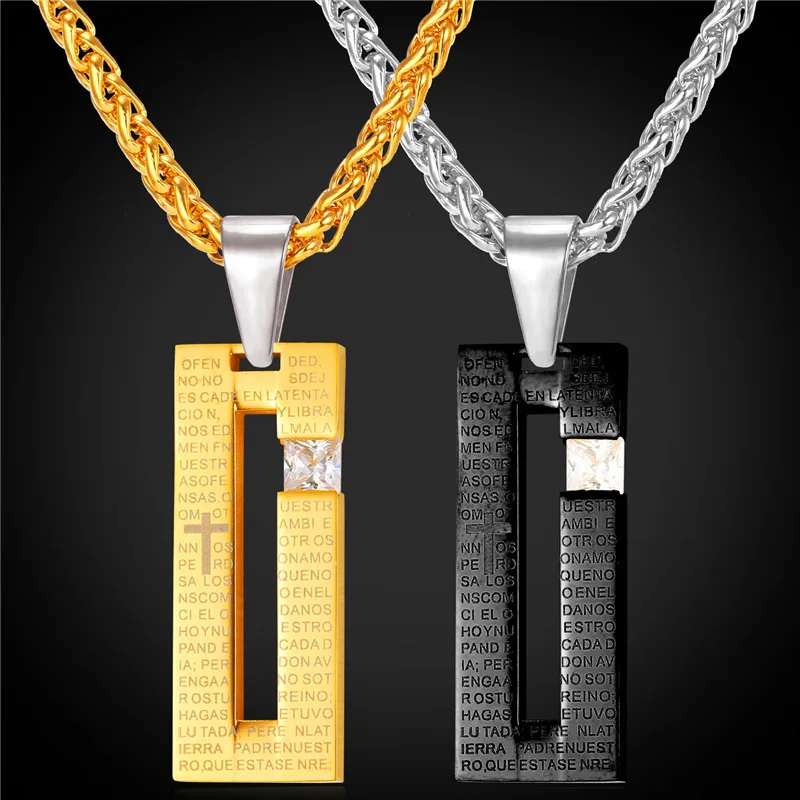 Cross Cubic Zirconia Pendant Necklace For Men Charms Hip Hop