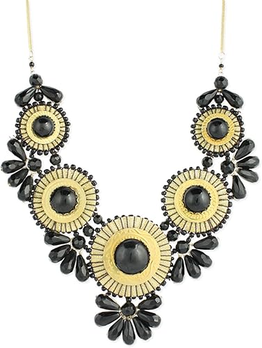 Amazon Com Zad Black Beaded Medallion Bib Necklace 24 26