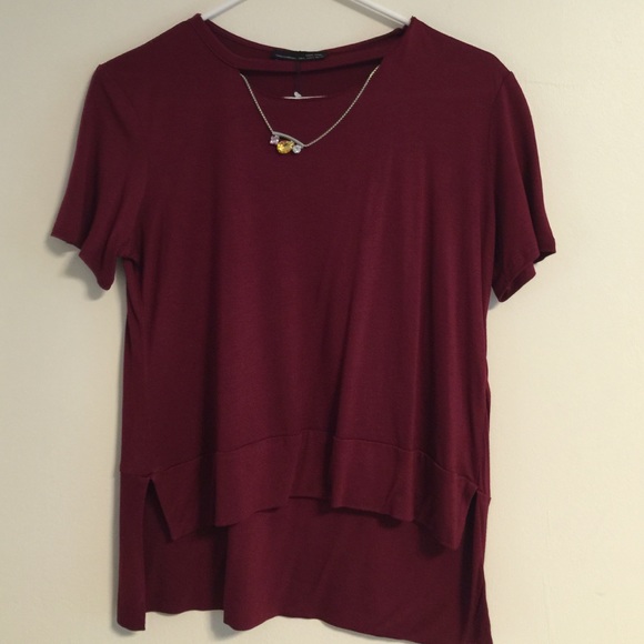 Zara Tops Brand New Burgundy T Shirt With Jewelry Poshmark