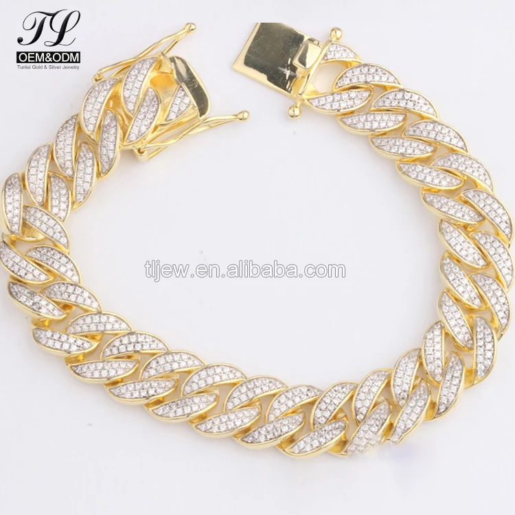 Bulk Custom Hip Hop Solid Mens Gold Cuban Link Bracelet Fine