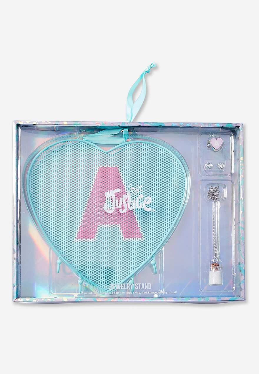 Heart Initial Hanging Jewelry Girls Holder Set Justice