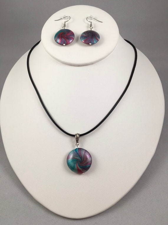 Teal Blue And Pink Swirled Polymer Clay Jewelry Set Earrings Etsy