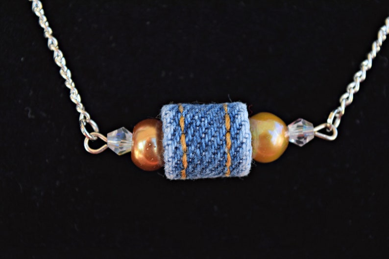 Recycled Denim Belt Loop Bead Necklace With Freshwater Golden Etsy