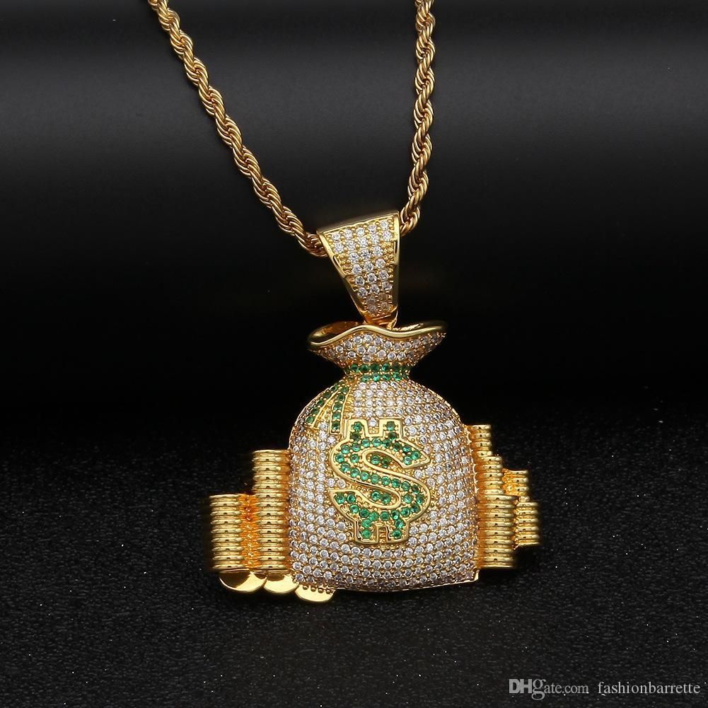 Wholesale Bling Gold Silver Money Bag Pendant Long Chain Hip Hop