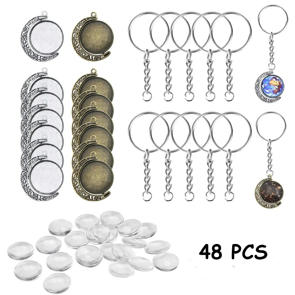 48pcs Pendant Jewelry Making Kit 12pcs Moon Rotation Blank Bezel