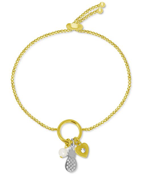 Kona Bay Pineapple Imitation Pearl Charm Bolo Bracelet In Gold