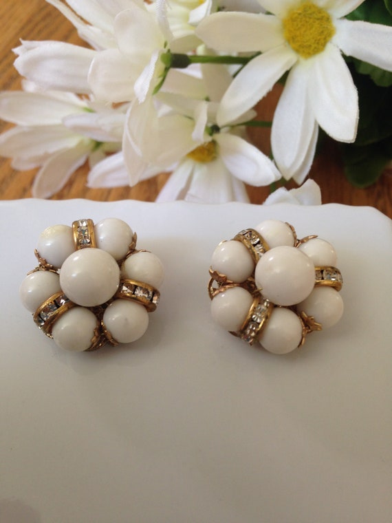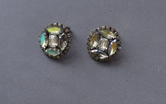 Vintage Kramer Earrings Rhinestone Signed Clip Etsy