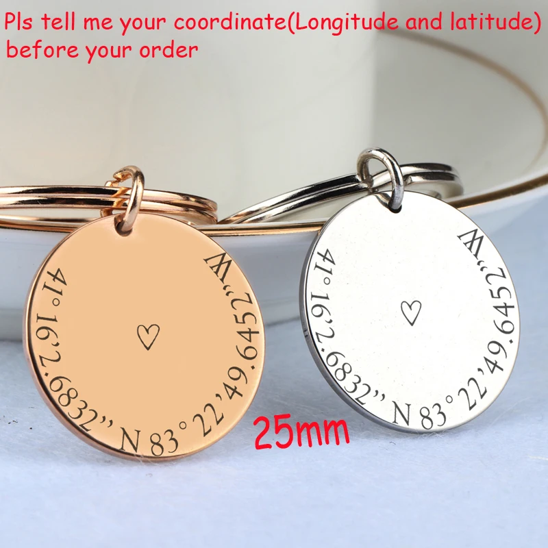 Custom Longitude And Latitude Round Keychain Personalized