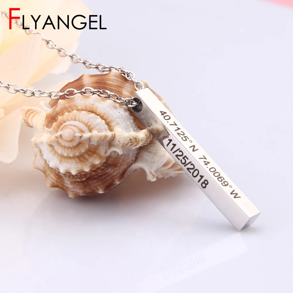Flyangel Jewelry Personalized Bar Necklace Custom Coordinates