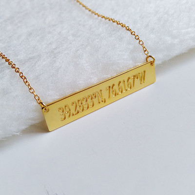 Personalized Gold Necklace With Longitude And Latitude Gold Bar