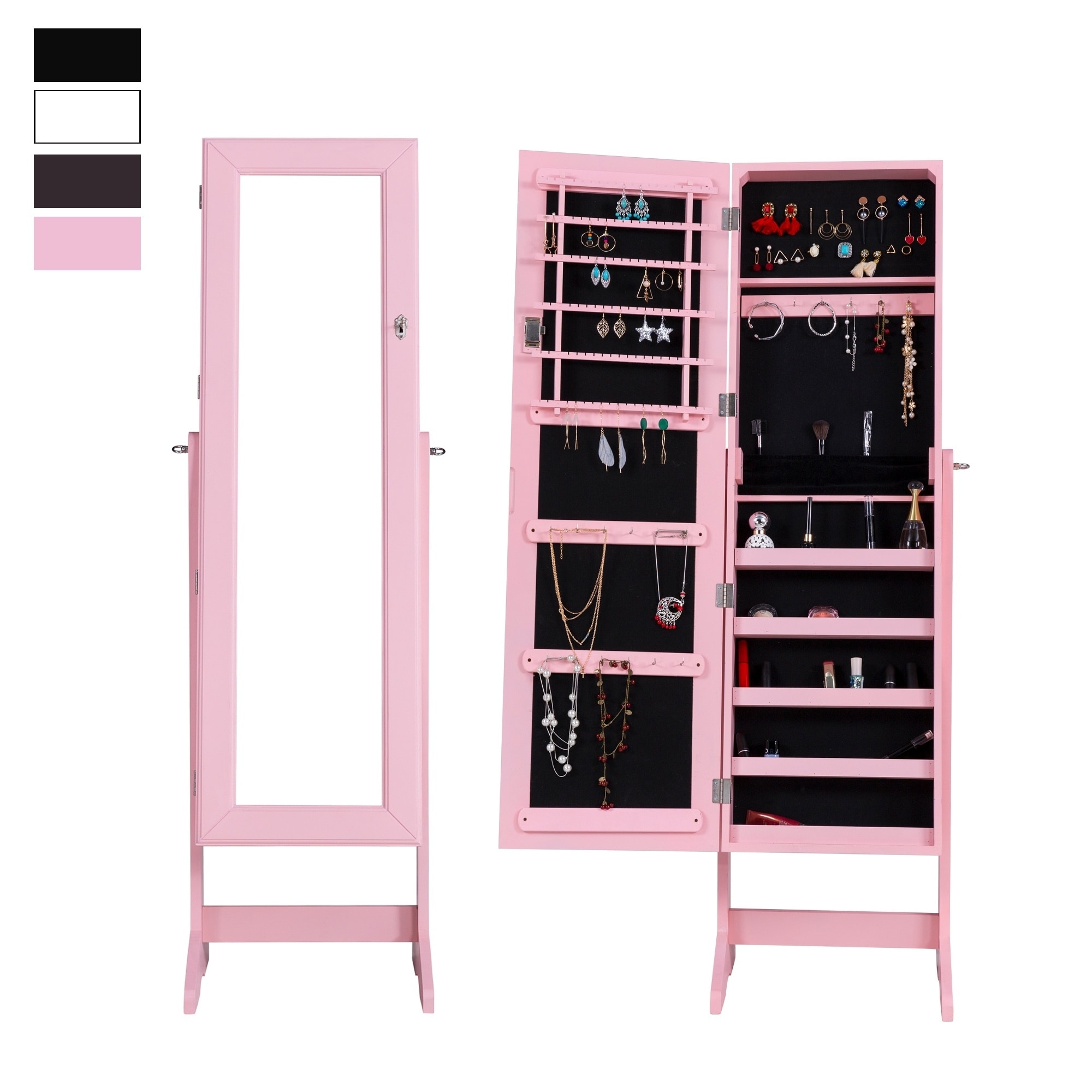 Lockable Jewelry Cabinet Standing Jewelry Armoire Organizer With