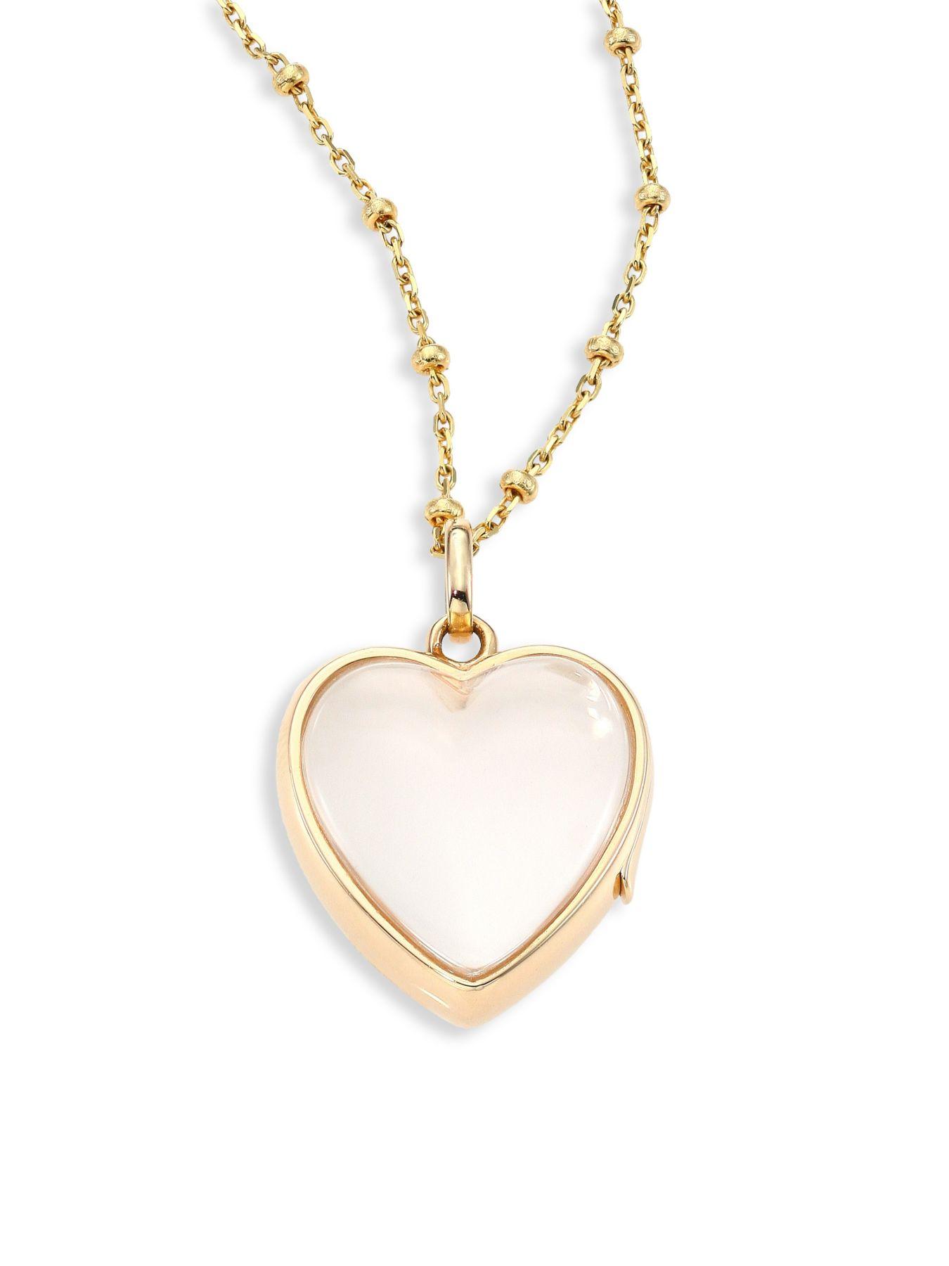Loquet London Medium 14k Yellow Gold Rock Crystal Heart Locket