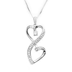 Love Is Forever Sterling Silver 1 10 Ct T W Diamond Double Heart