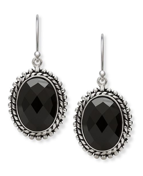 Macy S Black Onyx 10 X14 Mm Fishhook Earrings In Sterling Silver