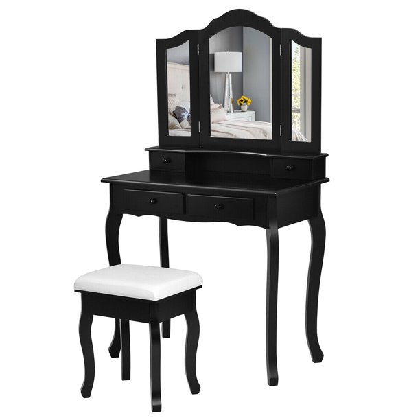 Costway Vanity Wood Makeup Table Stool Jewelry Desk White Black