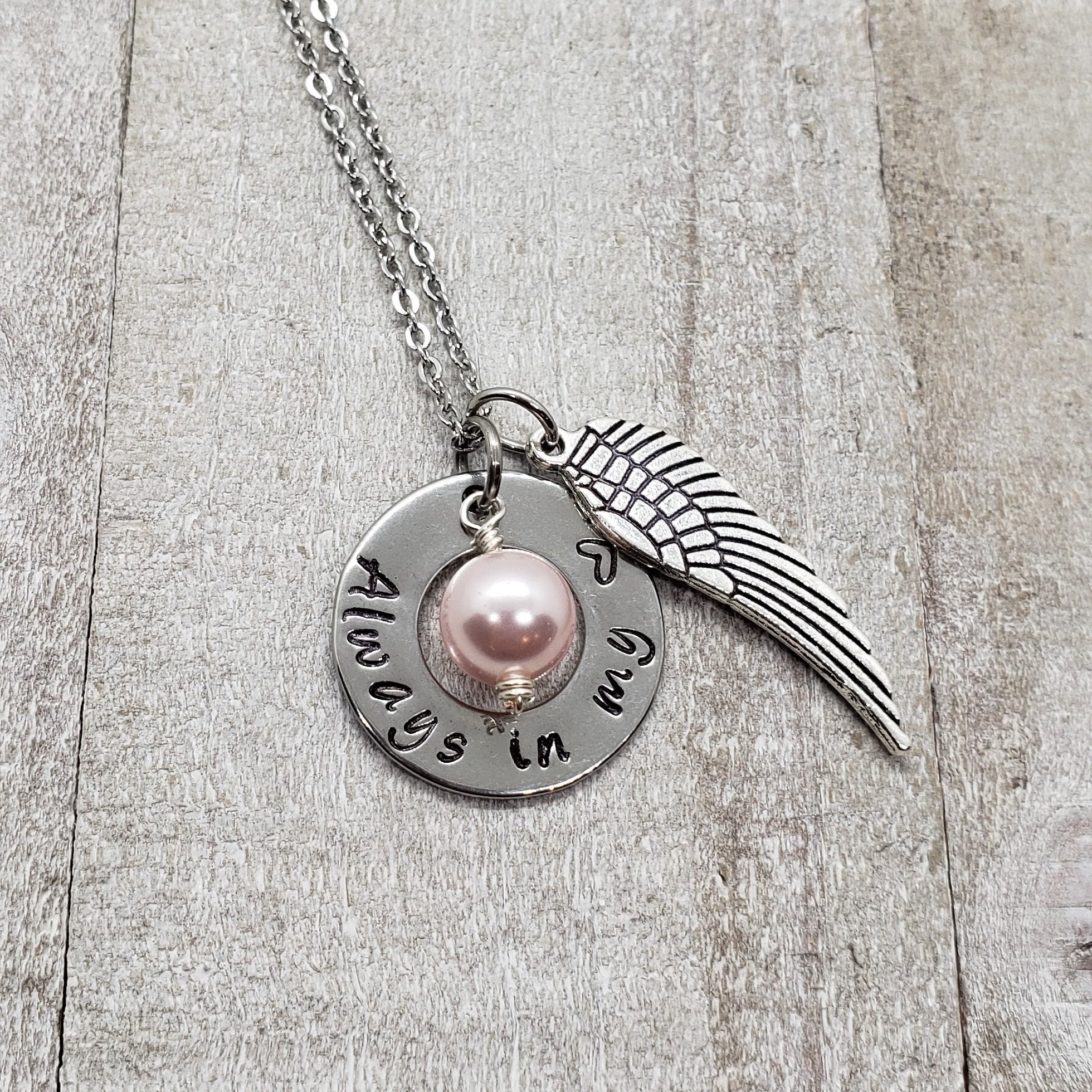 Always In My Heart Necklace Angel Wing Infant Child Memorial