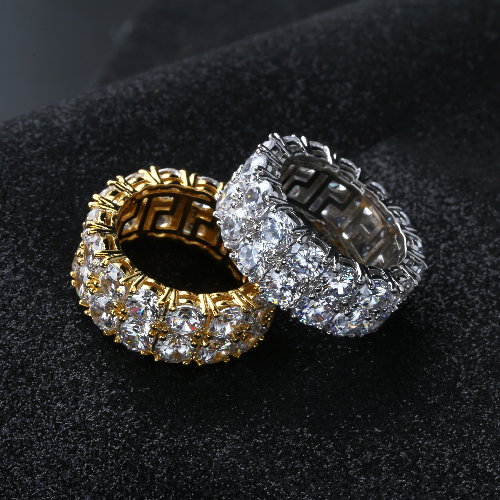 Hip Hop Iced Out Ring Micro Pave Cz Stone Tennis Ring Men Women