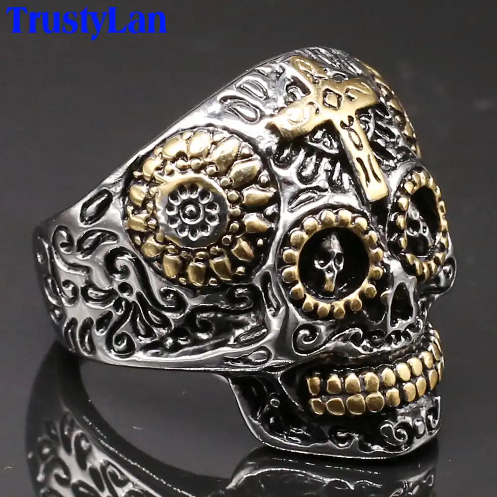 Gothic Gold Color Stainless Steel Skull Catacombs Men S Biker Ring