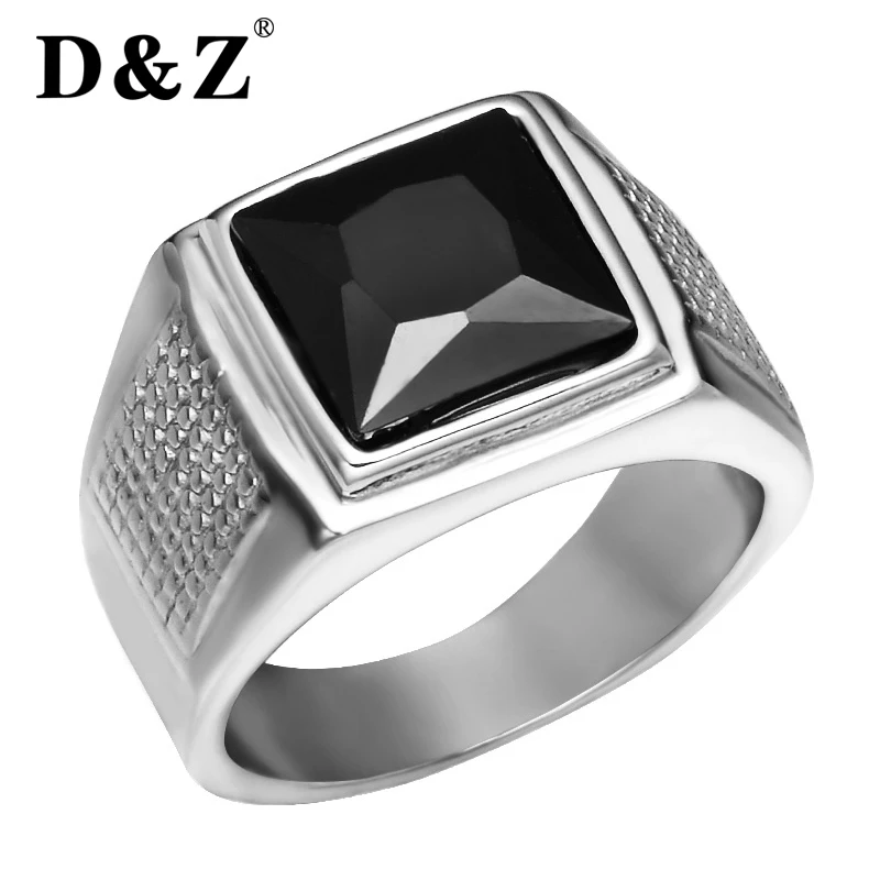 D Z Punk Square Cubic Zirconia Rings For Men Silver Stainless