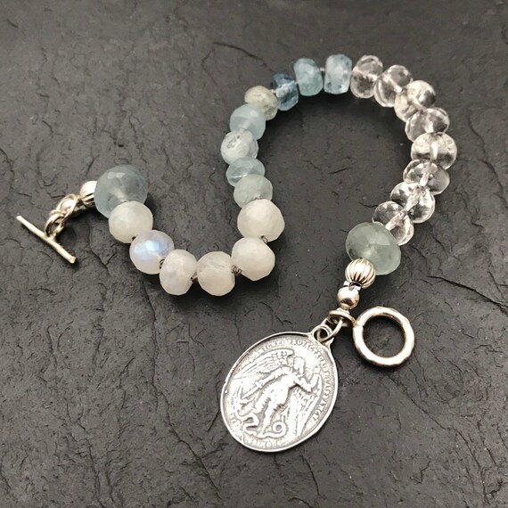 Archangel Michael Bracelet Rainbow Moonstone Bracelet Saint Etsy