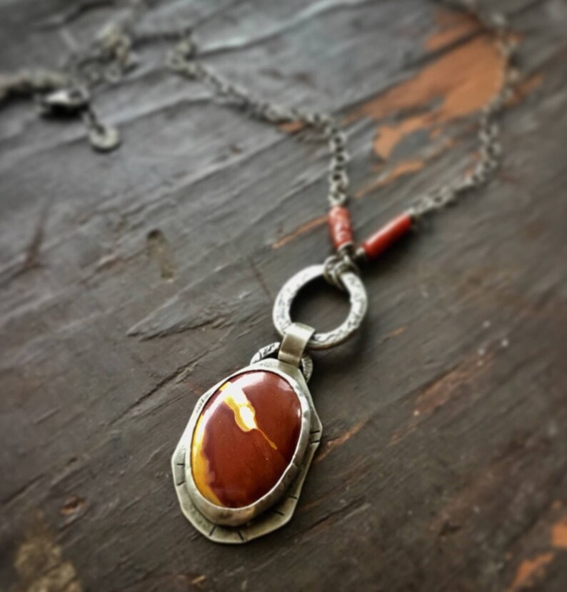 Large Gemstone Necklace Mookaite Jewelry Metalsmith Etsy