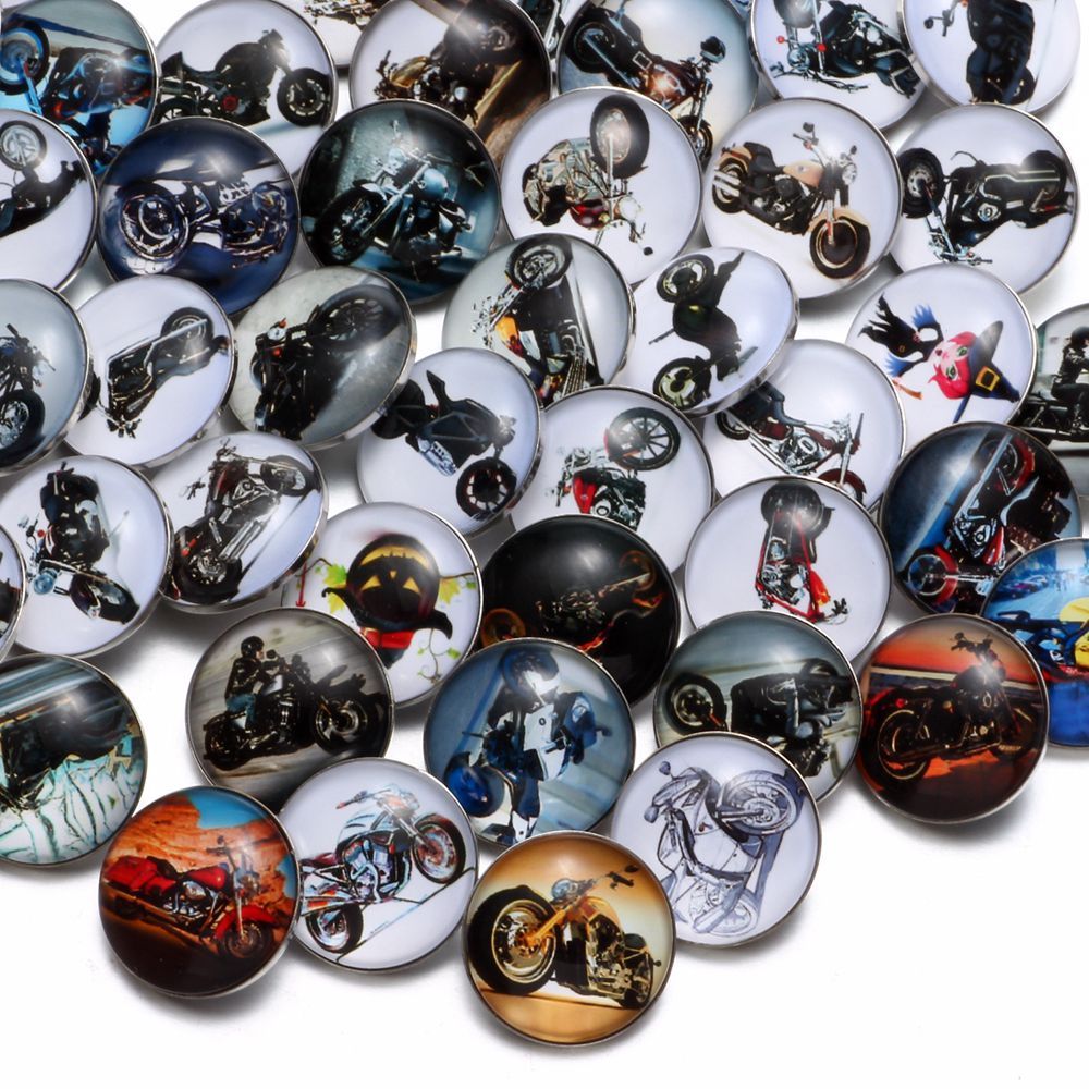 Mixed Moto Pattern Glass Charms 18mm Snap Button Jewelry For 18mm