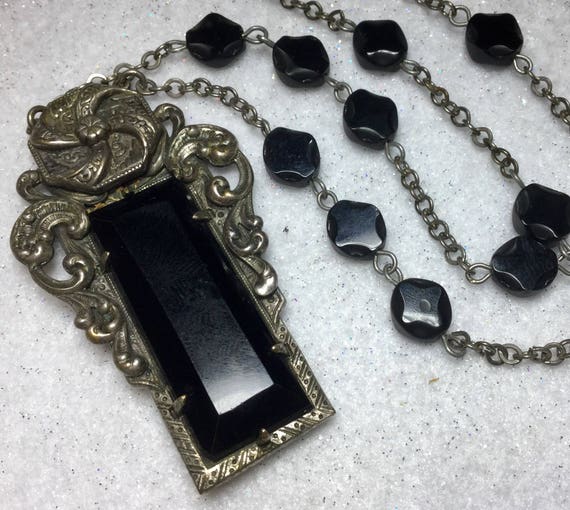 Black Jet Pendant Necklace Earrings Bead Mourning Jewelry Etsy
