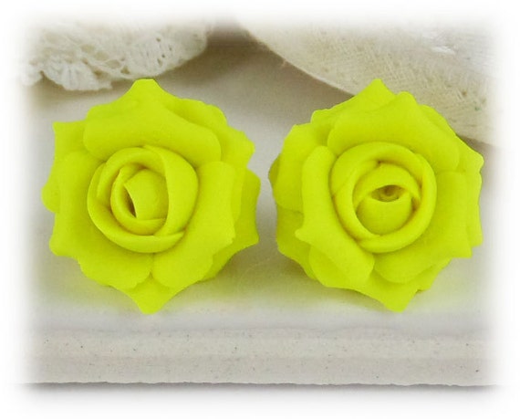 Yellow Neon Rose Earrings Stud Or Clip On Fluorescent Yellow Etsy