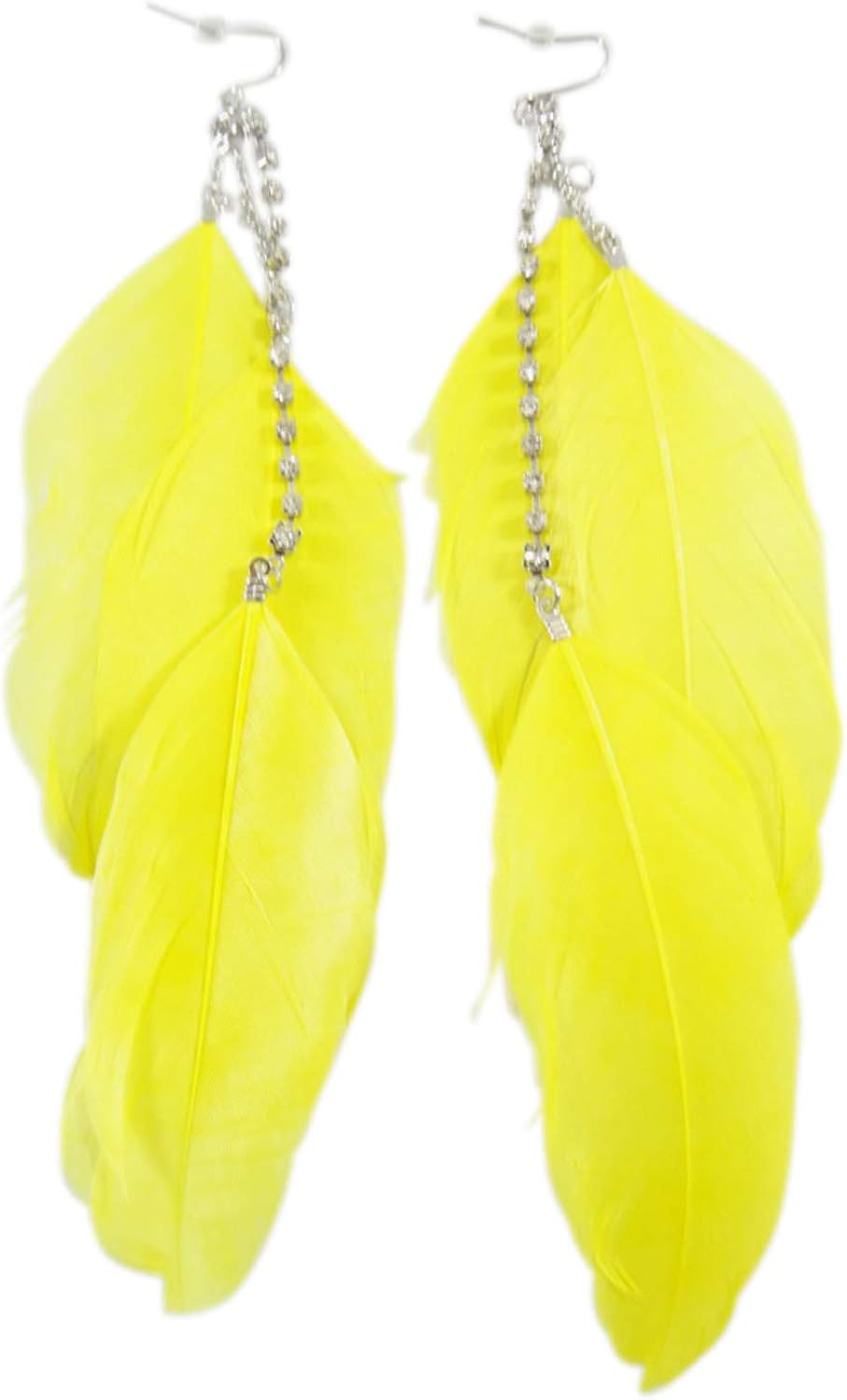 Amazon Com New Pair Of Bright Yellow Three Feather Earrings With