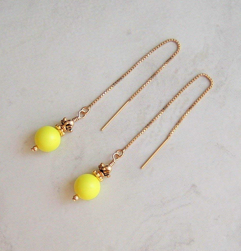 Amazon Com Neon Yellow Round Simulated Pearl Gold Filled Ear