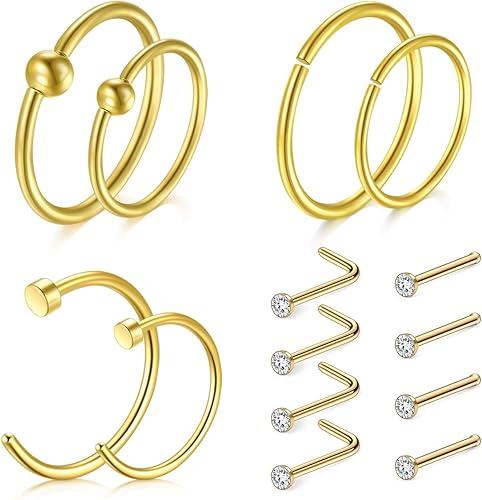 Amazon Com D Bella White Gold Nose Ear Rings 14pcs 18g 8mm 10mm