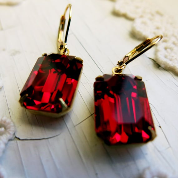 Red Earrings Estate Earrings Jewel Earrings Old Hollywood Vintage