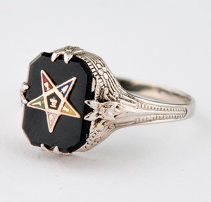 Vintage Masonic 14k White Gold Black Onyx Order Of Eastern Star