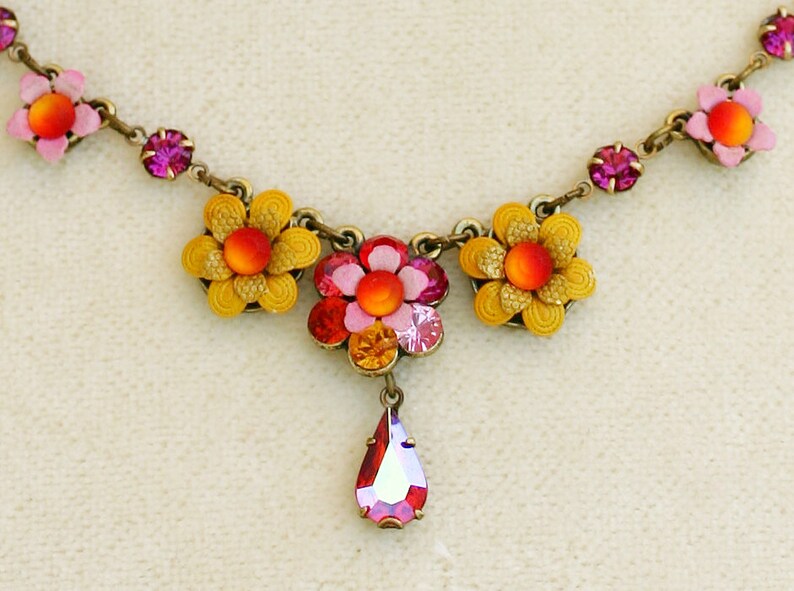 Orly Zeelon The Flower Trio Necklace Crystal Jewelry Gift Etsy