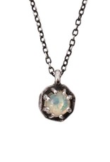 Lauren Wolf Jewelry Tiny Oxidized Silver Octagon Necklace Opal