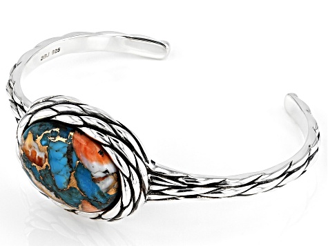 Blended Kingman Turquoise And Spiny Oyster Shell Rhodium Over