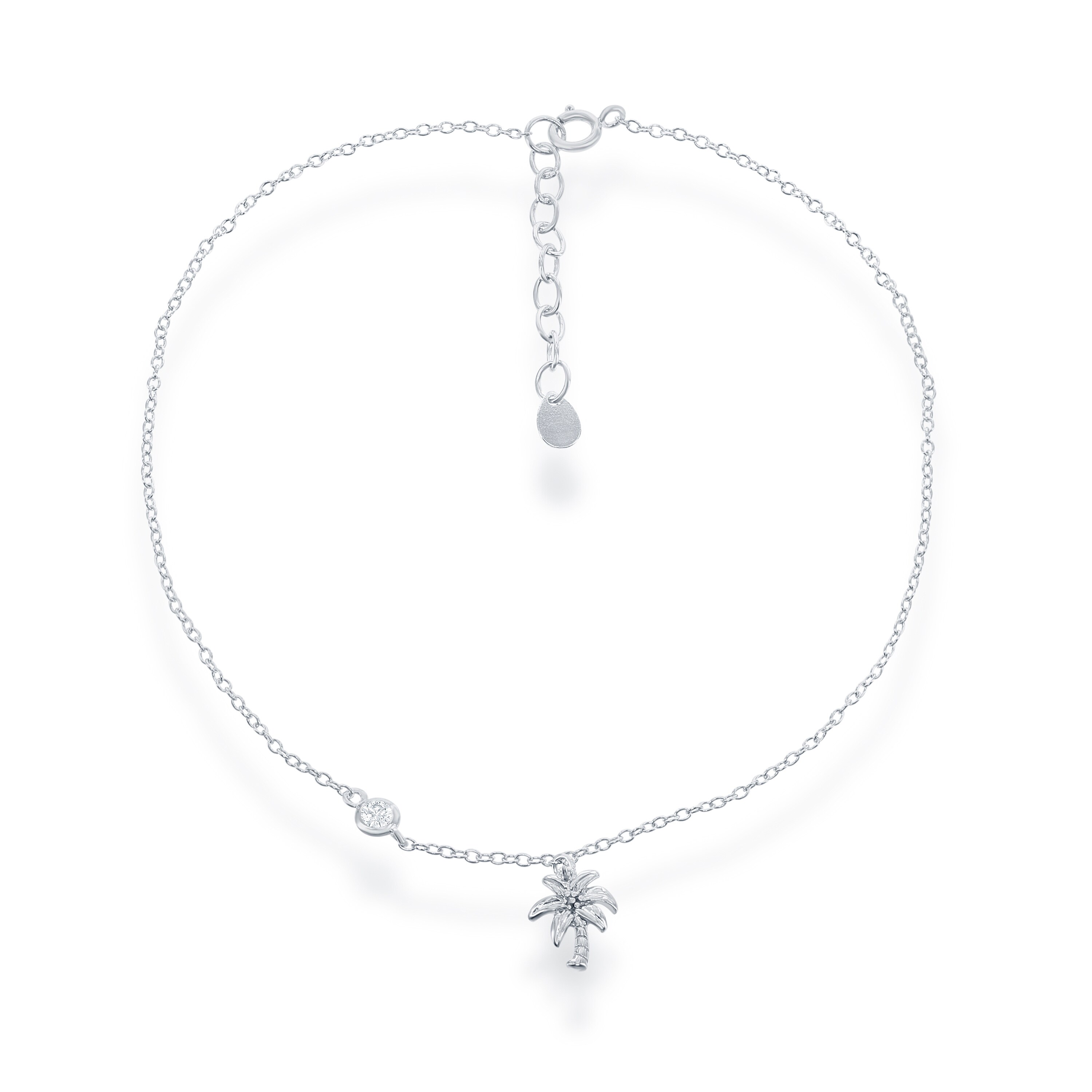 Palm Tree Anklet 10 Inch Sterling Silver Solid Polished Homebello