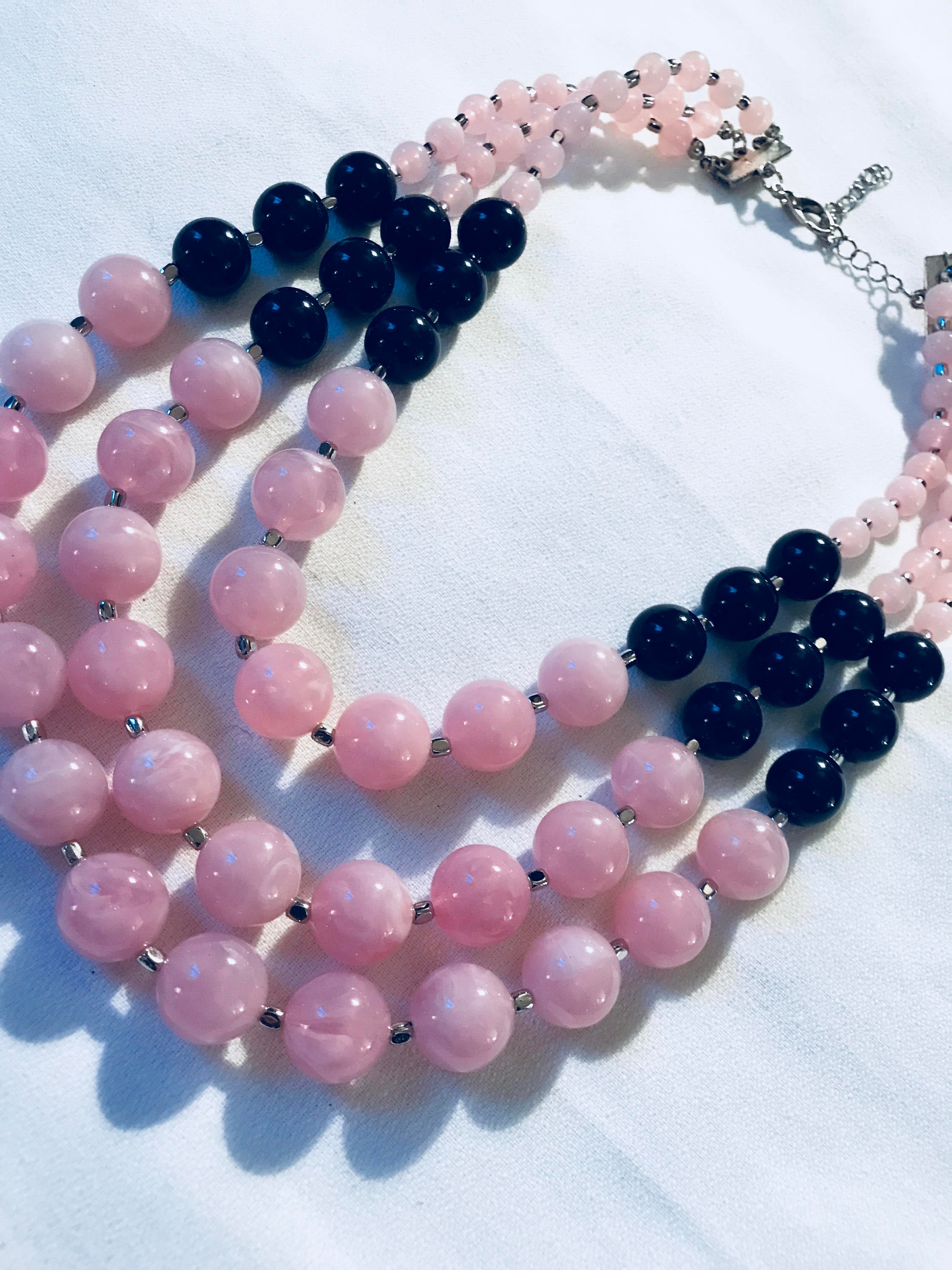 Preppy Pale Pink Dark Navy Blue Multi Stranded Beaded