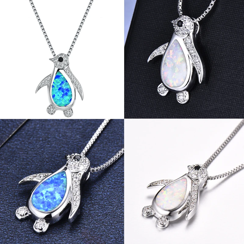 Cute Female Penguin Animal Pendant Necklace 925 Sterling Silver