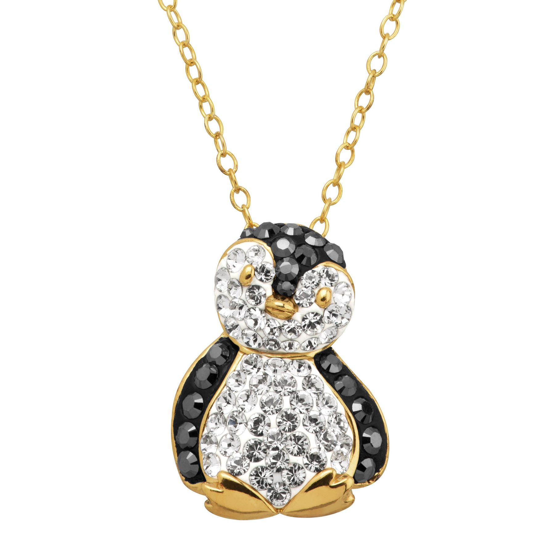 Penguin Pendant With Crystals In 18k Gold Plated Sterling Silver
