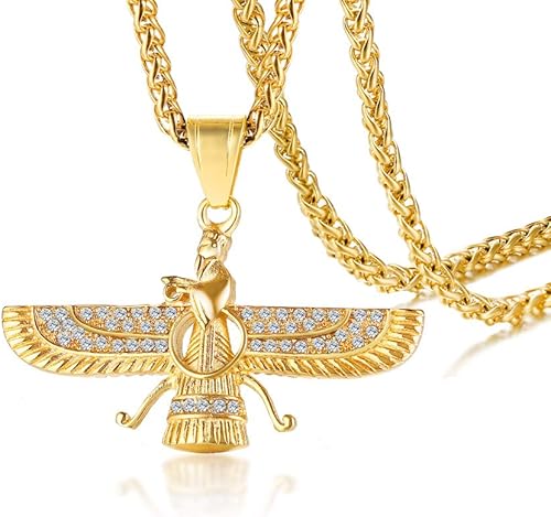 Mealguet Gold Plated Stainless Steel Iced Out Farvahar Zoroastrian