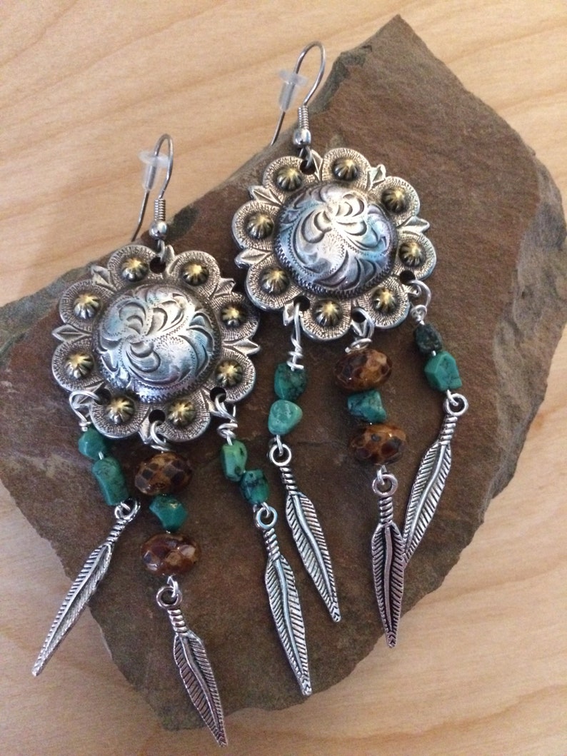 Turquoise Pico Berry Concho Western Earrings Etsy