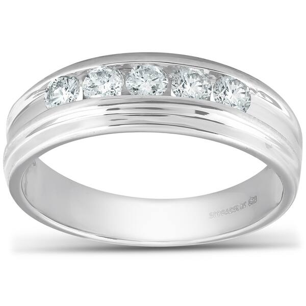 1 Ct Mens Diamond Five Stone Wedding Ring 10k White Gold
