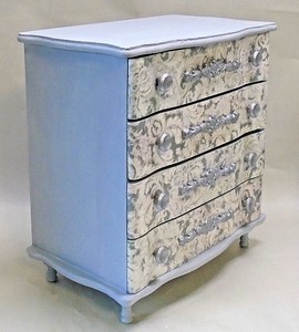 Refurbished Vintage Wood Decoupage Jewelry Box White Gray